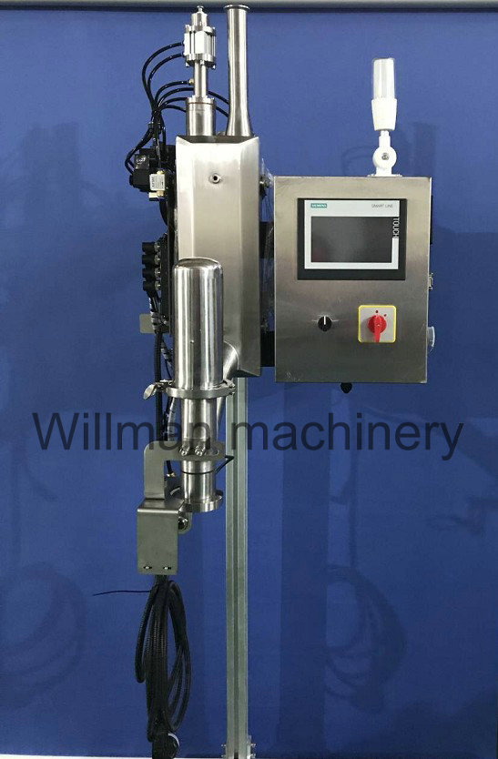 液氮加注機(jī)包括固定座、設(shè)有進(jìn)液口和出液口并與固定座固定連接的保溫儲(chǔ)存筒、保溫加注頭、兩端分別與出液口和保溫加注頭連接的保溫輸液管。液氮加注機(jī)使用時(shí),進(jìn)液口與真空液氮輸送管道連接,需要加注液氮時(shí),保溫儲(chǔ)存筒經(jīng)保溫輸液管通過保溫加注頭將液氮加注入鋁罐中;液氮加注機(jī)也可以用于其他食品軟包裝的液氮加注。并且液氮加注機(jī)結(jié)構(gòu)緊湊用于非碳酸飲料鋁罐液氮加注操作方便和液氮純液相質(zhì)量較好。